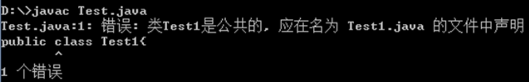 例如执行命令javac Test1.java,提示找不到文件Test1.java.