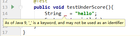 但是,在 java 9 中规定“_”不再可以单独命名标识符了,如果使用,会报错: