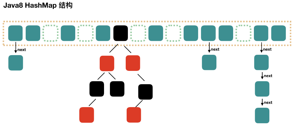 JDK1.8 之后使用:数组 + 链表/红黑树的结构。