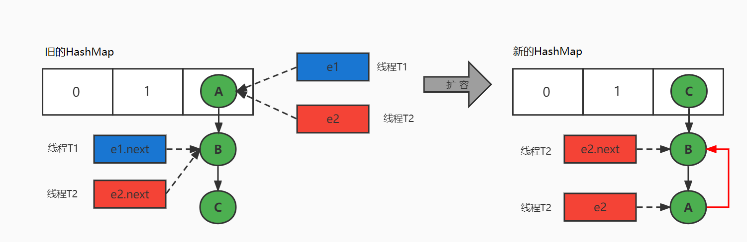 HashMap 死循环只会发生在 JDK1.7 版本中,主要原因:头插法 + 链表 + 多线程并发 + 扩容。