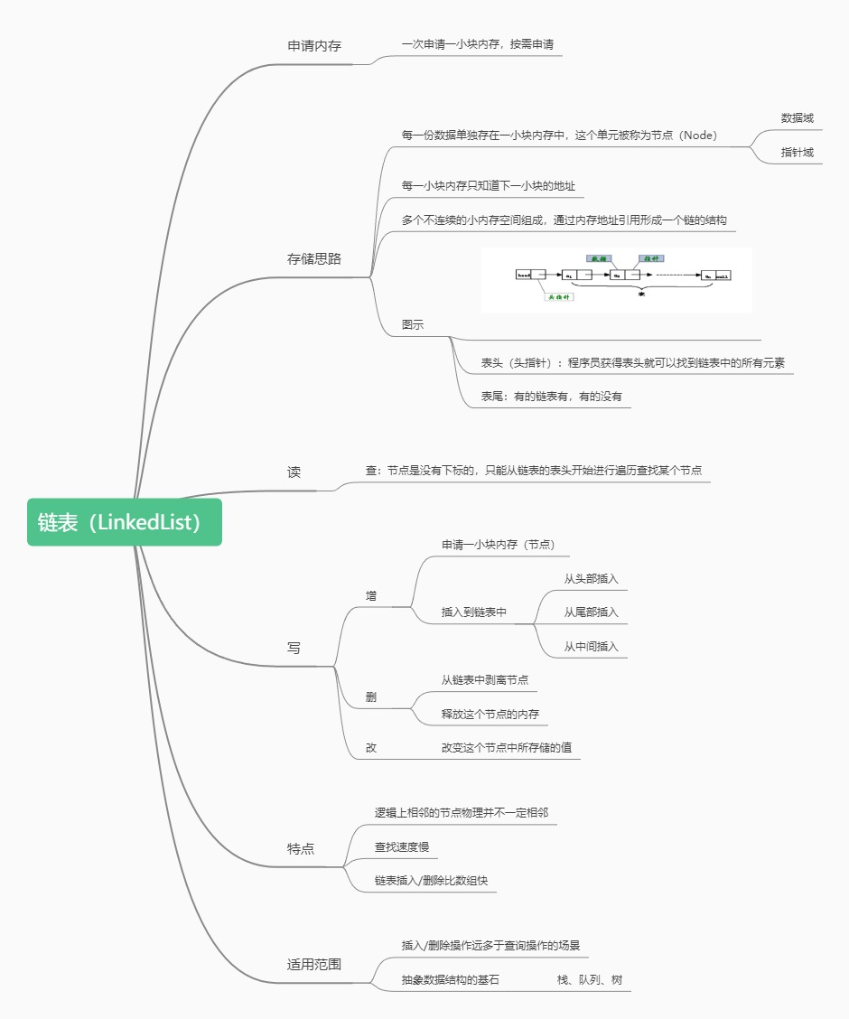 不使用连续的存储空间存放元素,而是为每一个元素构造一个节点(包含元素和指向下一个元素的指针)。 节点中除了存放数据本身以外,还需要存放指向下一个节点的指针。