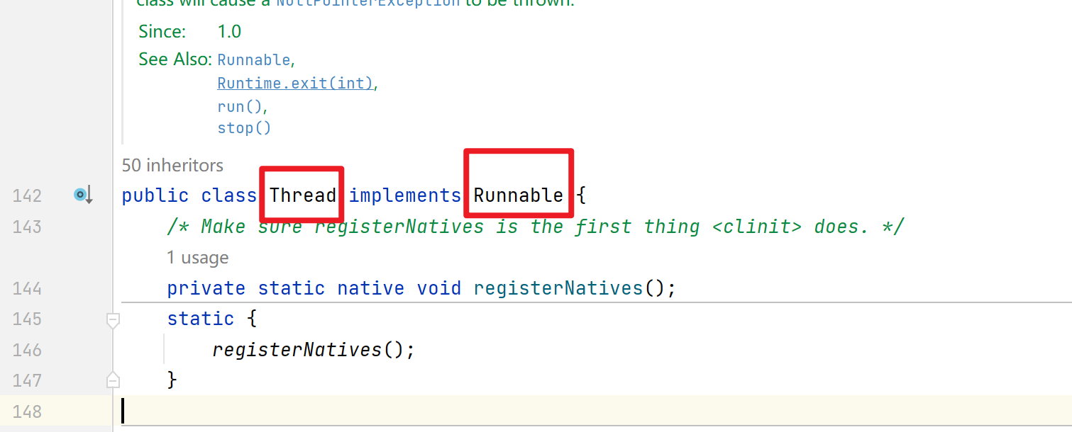Runnable 对象仅仅作为 Thread 对象的target,Runnable 实现类里包含的 run() 方法仅作为线程执行体。 而实际的线程对象依然是 Thread 实例,只是该 Thread 线程负责执行其 target 的 run() 方法。