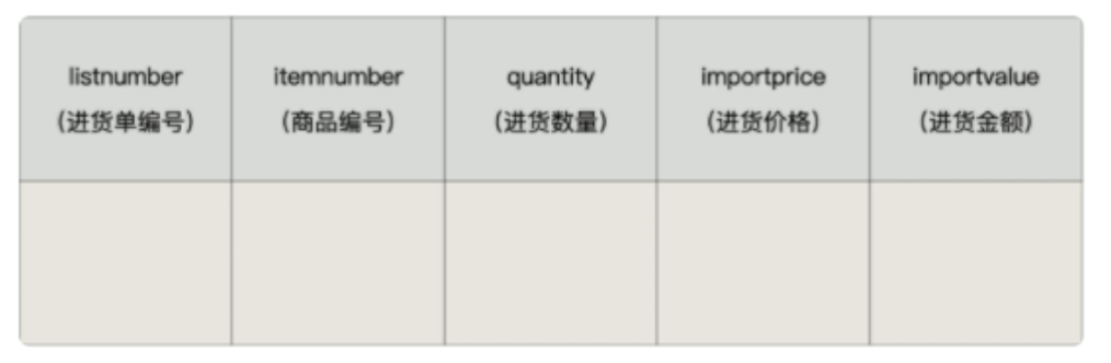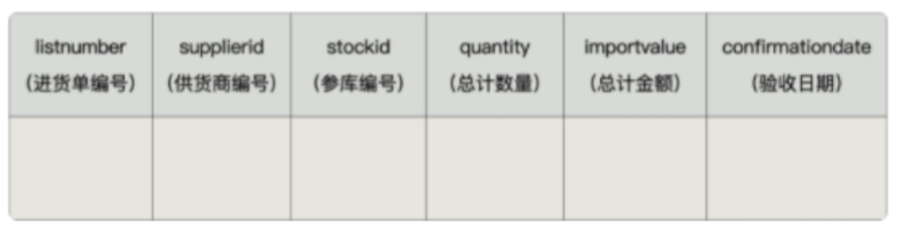 假设我们用 进货单头表(demo.importhead)来保存进货单的总体信息,包括进货单编号、供货商编 号、仓库编号、总计进货数量、总计进货金额和验收日期。