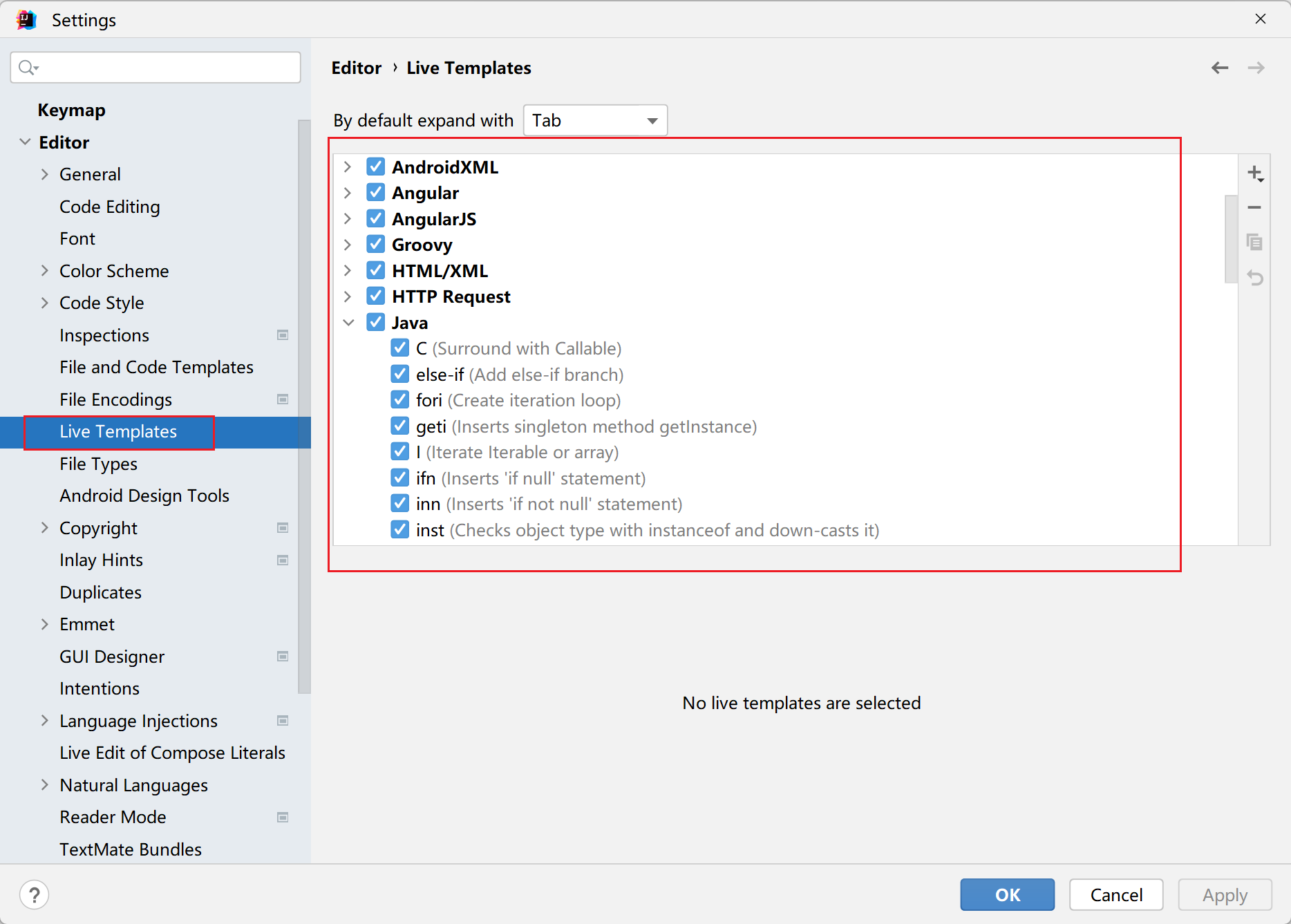 实时代码模板(Live Templates)