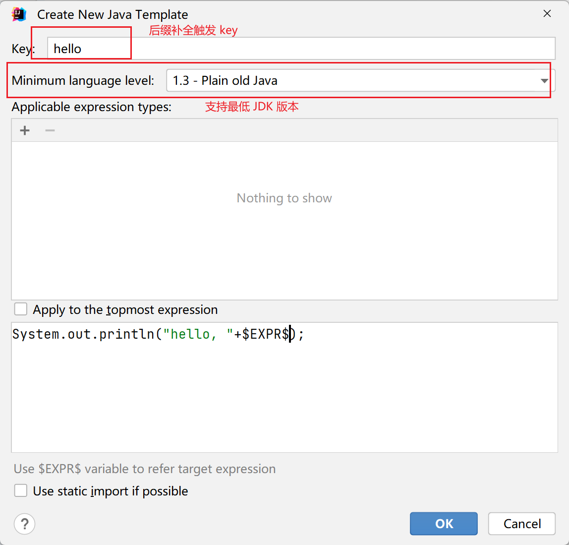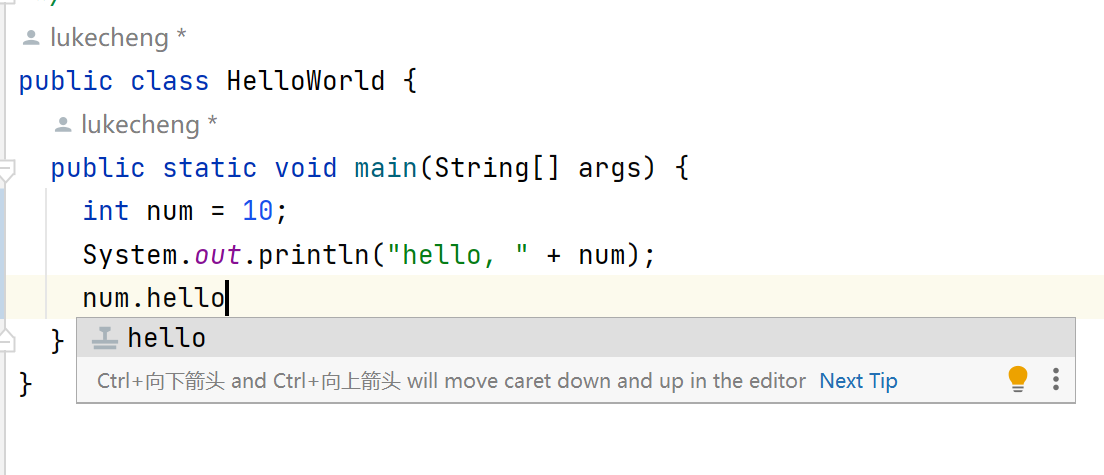 在 .java 文件里就可以使用 xxx.hello 的后缀代码补全啦。