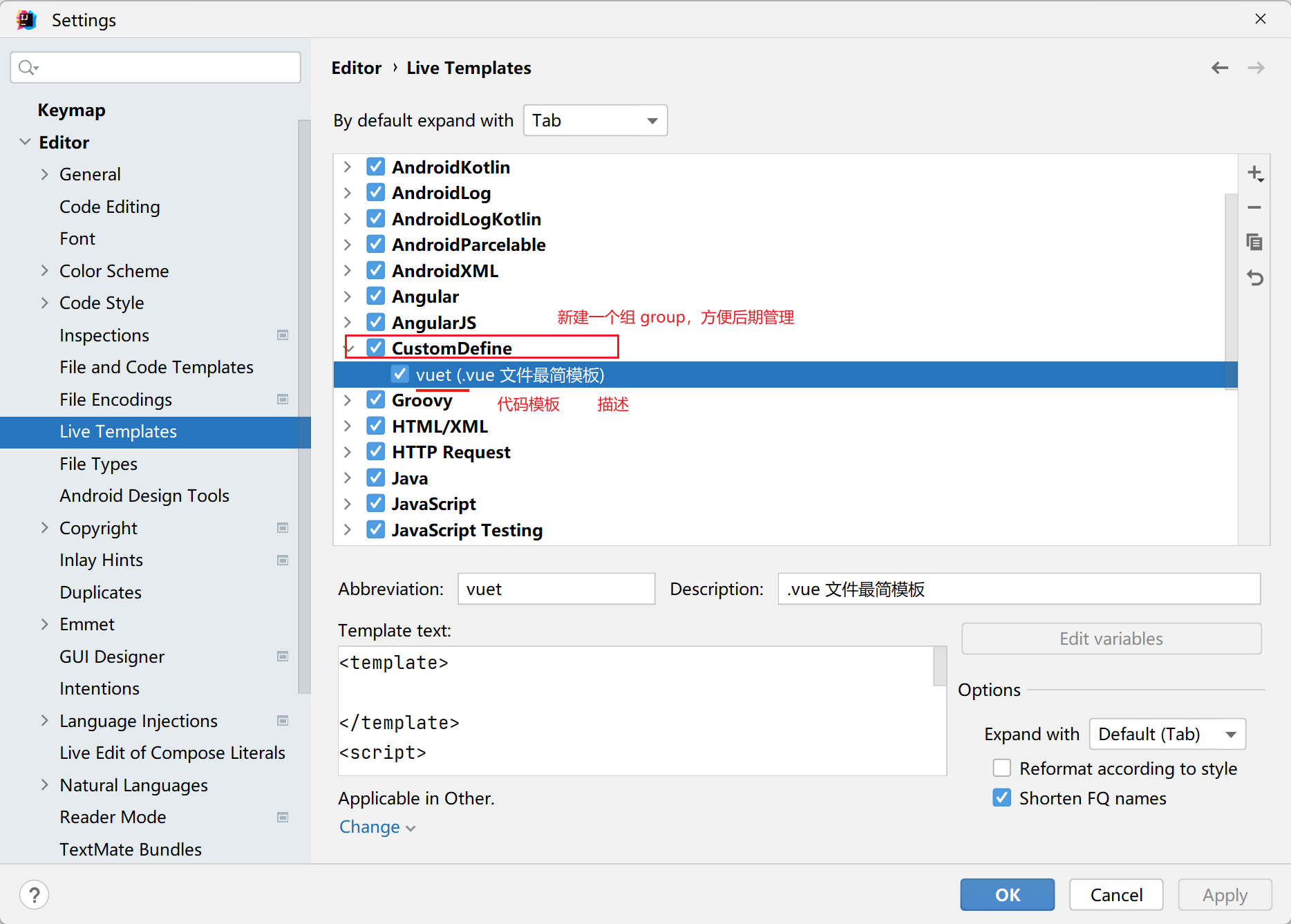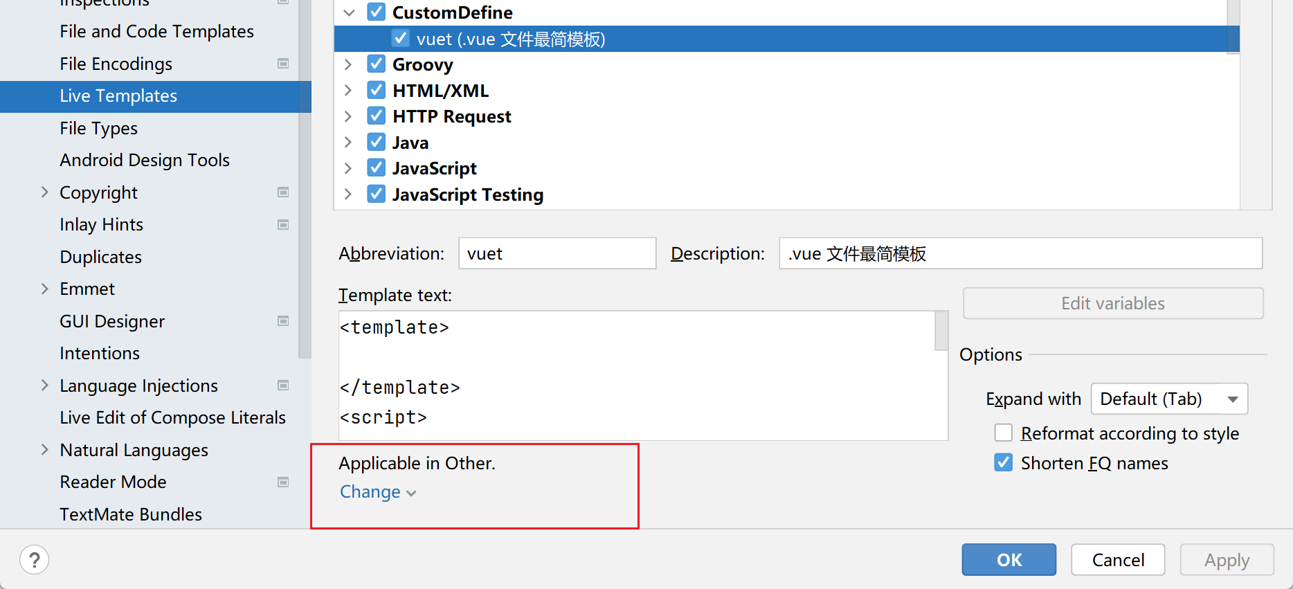 自定义 Live Templates