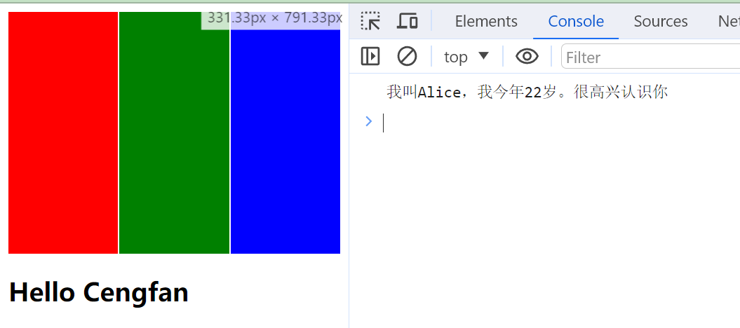 console.log(`我叫${this.name},我今年${this.age}岁。很高兴认识你`)