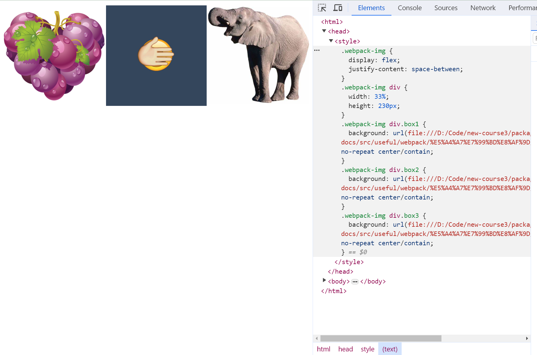 经过 css-loader 的转译,我们已经得到了完整的 css 样式代码,style-loader 的作用就是将结果以 style 标签的方式插入 DOM 树中。