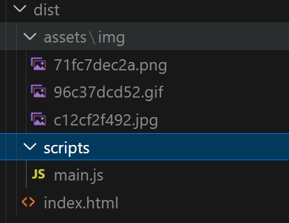 新的 main.js 被打包到我们在 filname 中指定的 scripts 文件夹下。